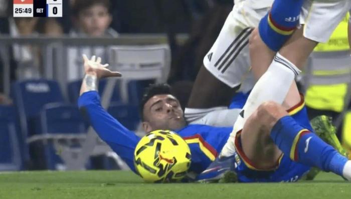 比赛第26分钟,镜头给得清清楚楚。吕迪格在和赫塔费边卫里科的拼抢中,人家都倒地了,吕迪格那个膝盖,带着一股子“顺路收点过路费”的劲儿,狠狠地、连续地顶在了里科的脸上 。