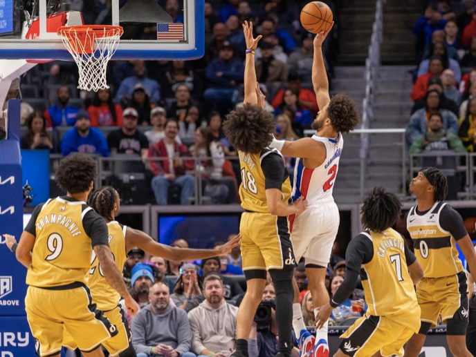 次节比赛,活塞上来进攻依然低迷,奇才则继续拿分,库珀突破打进取得22分领先,可在之后奇才进攻手感突然下滑,活塞则找回状态,连续突破和反击拿分,打出一波17-0攻势将分差迫近至3分,萨尔内线打进止血,霍兰抢断暴扣追至1分,莱利三分命中稳住,半场奇才56-52领先活塞。